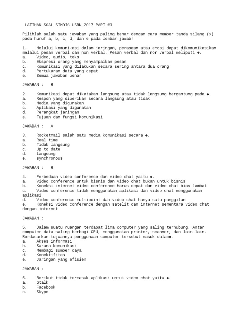 50 soal latihan usbn simulasi digital 2019 lengkap beserta kunci jawabannya a. Latihan soal usbn simulasi digital di sertai jawaban 2018 smk kumpulan soal simdig contoh sistem operasi tkj jenis jenis router apa yang dimaksud dengan komputer soal kkpi materi tkj jenis kabel jaringan kabel serat optik keunggulan kabel utp kecuali sistem jaringan internet jenis jenis jaringan internet gambar jaringan internet jenis jaringan internet contoh jaringan internet sistem. Latihan Soal SIMKOMDIG 2018.