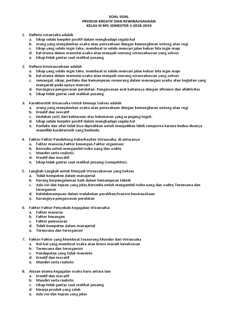 Kumpulan Soal Produk Kreatif Dan Kwu Kelas Xi Rpl