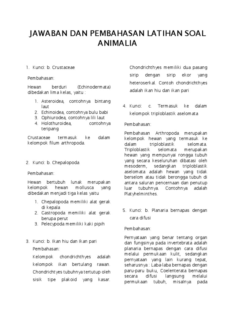 Contoh Soal Animalia Dan Jawabannya Ilmusosial Id