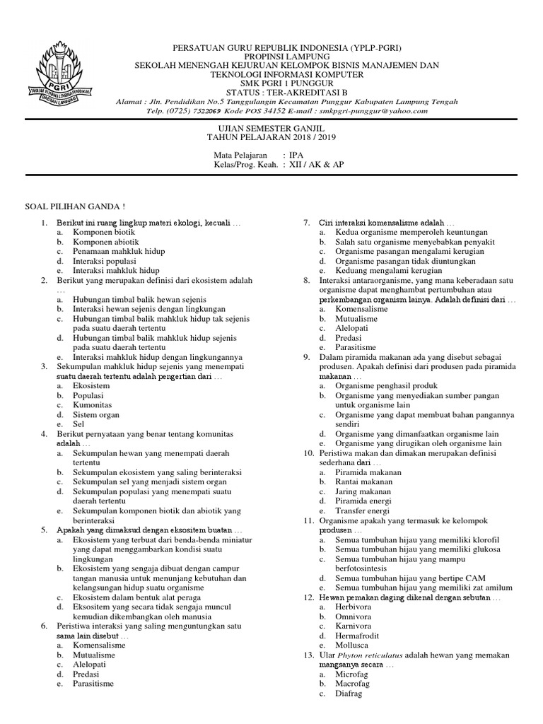 Soal Ipa Kelas Xii Smk Tentang Ekosistem