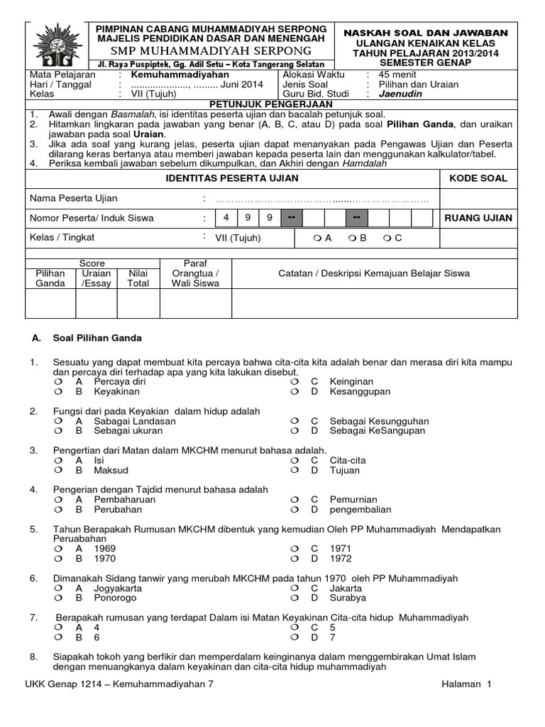 Contoh Soal Kemuhammadiyahan Dan Jawabannya Ilmusosial Id