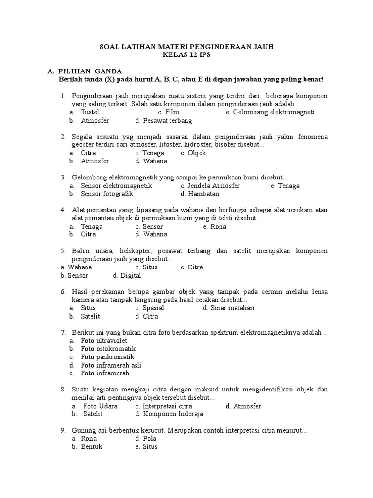 Contoh Soal Un Citra Penginderaan Jauh Dan Jawabannya Soalfismat Com
