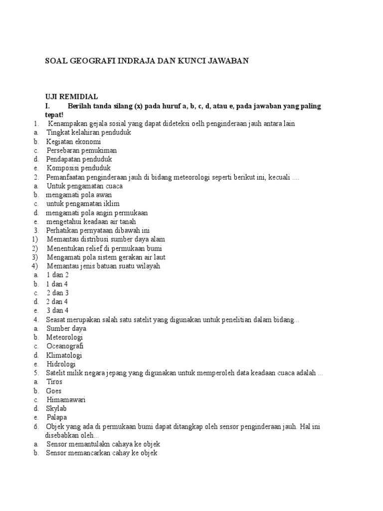 Soal Geografi Indraja Dan Kunci Jawaban
