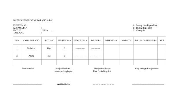 Contoh Bon Permintaan Peralatan Perlengkapan Kantor Cute766