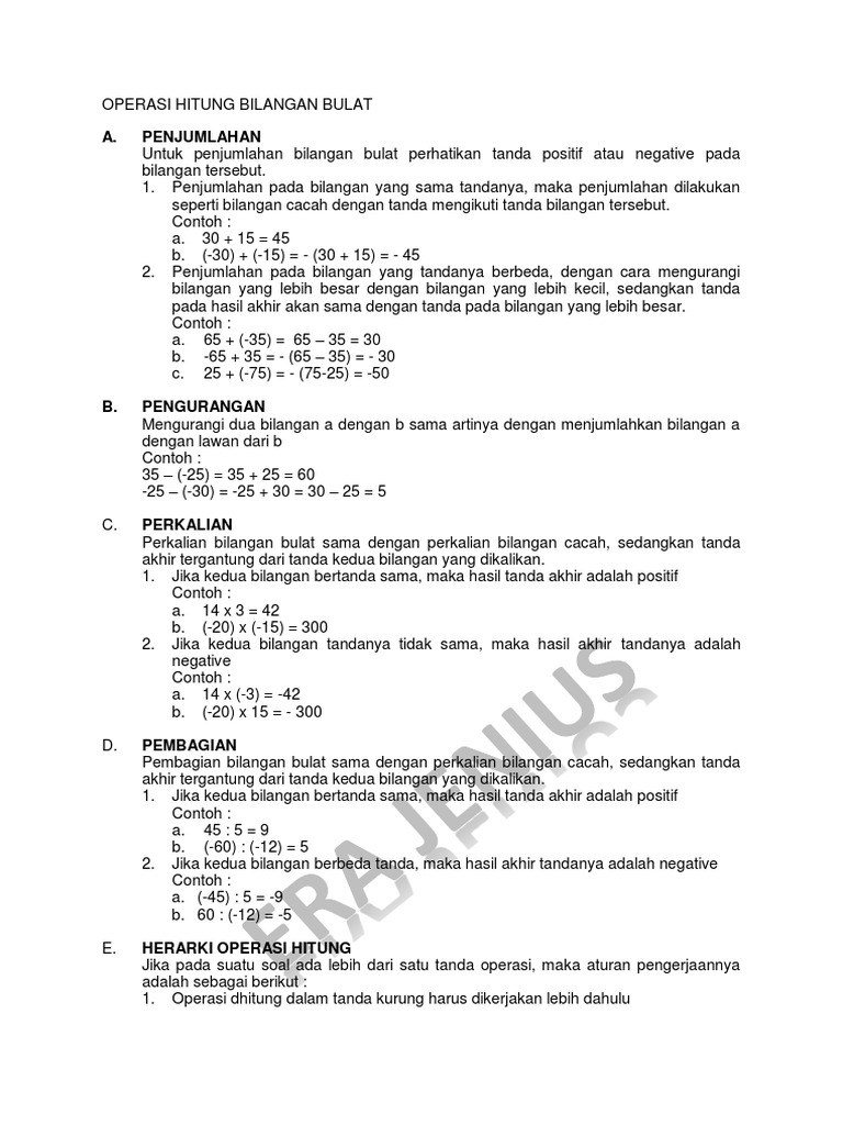 Contoh Soal Operasi Hitung Bilangan Bulat Penjumlahan Dan Pengurangan