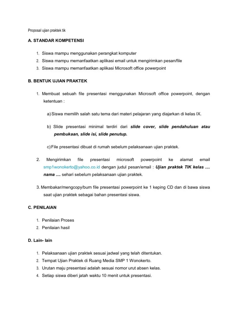 Ujian Praktek Tik Kelas Ix Smp Negeri 2 Sui Kakap
